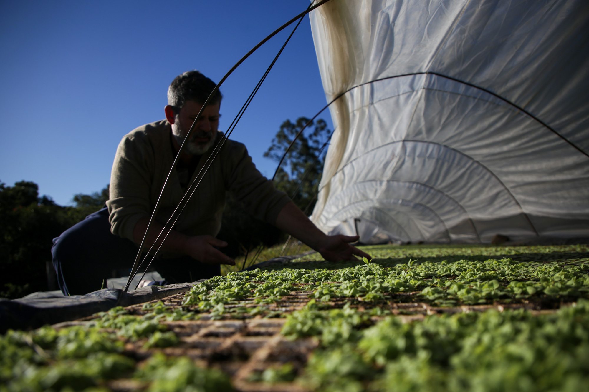 At the end of June, farmer Paulo Sérgio Padilha’s tobacco seedlings are being prepared for planting on his property in the hills of Sinimbu, countryside of Rio Grande do Sul (Photo: Isabelle Rieger/O Joio e O Trigo)